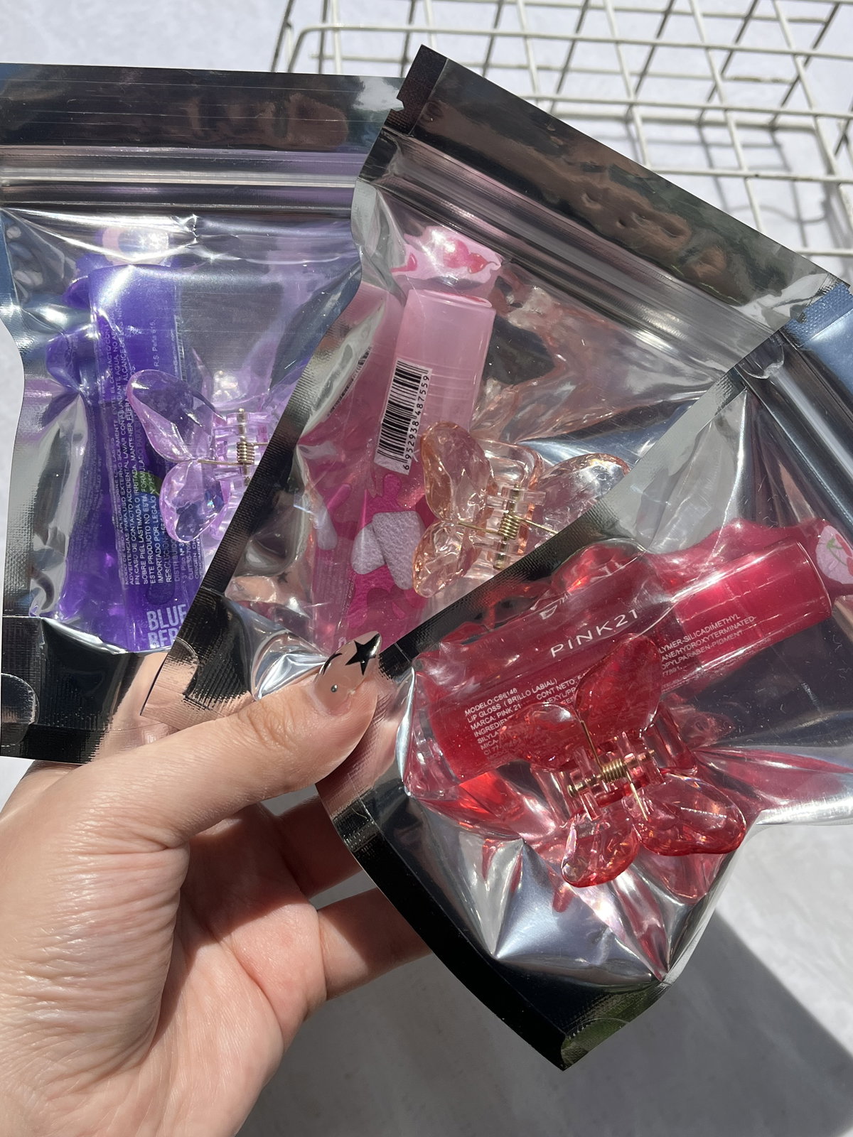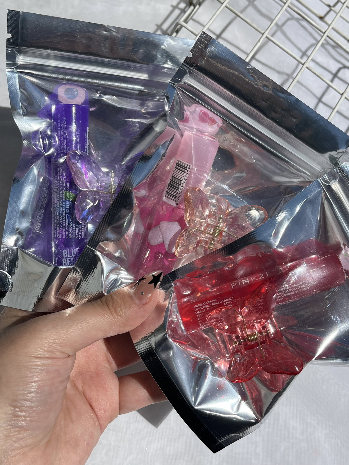 3 broches + gloss y bolsita holografica