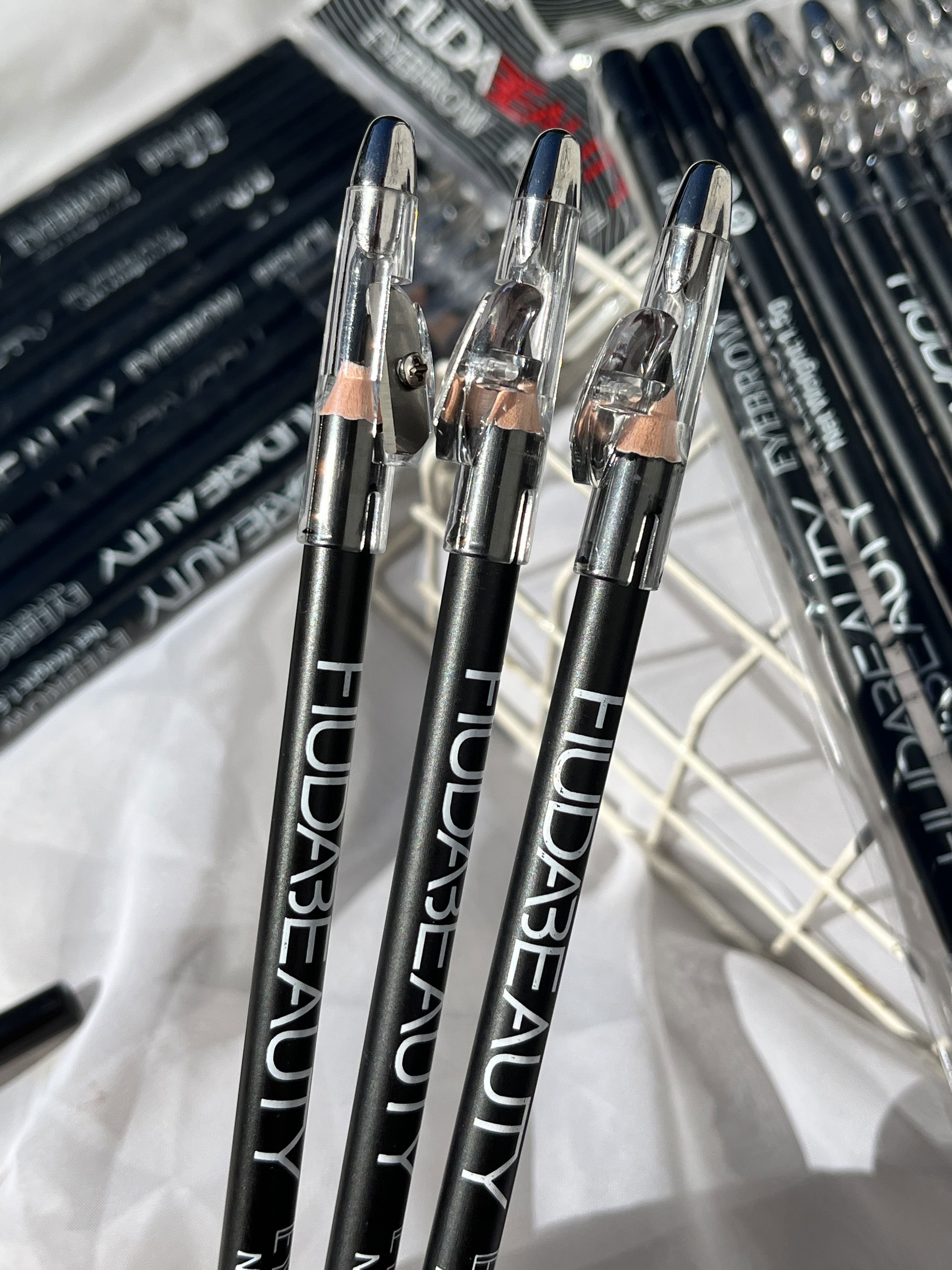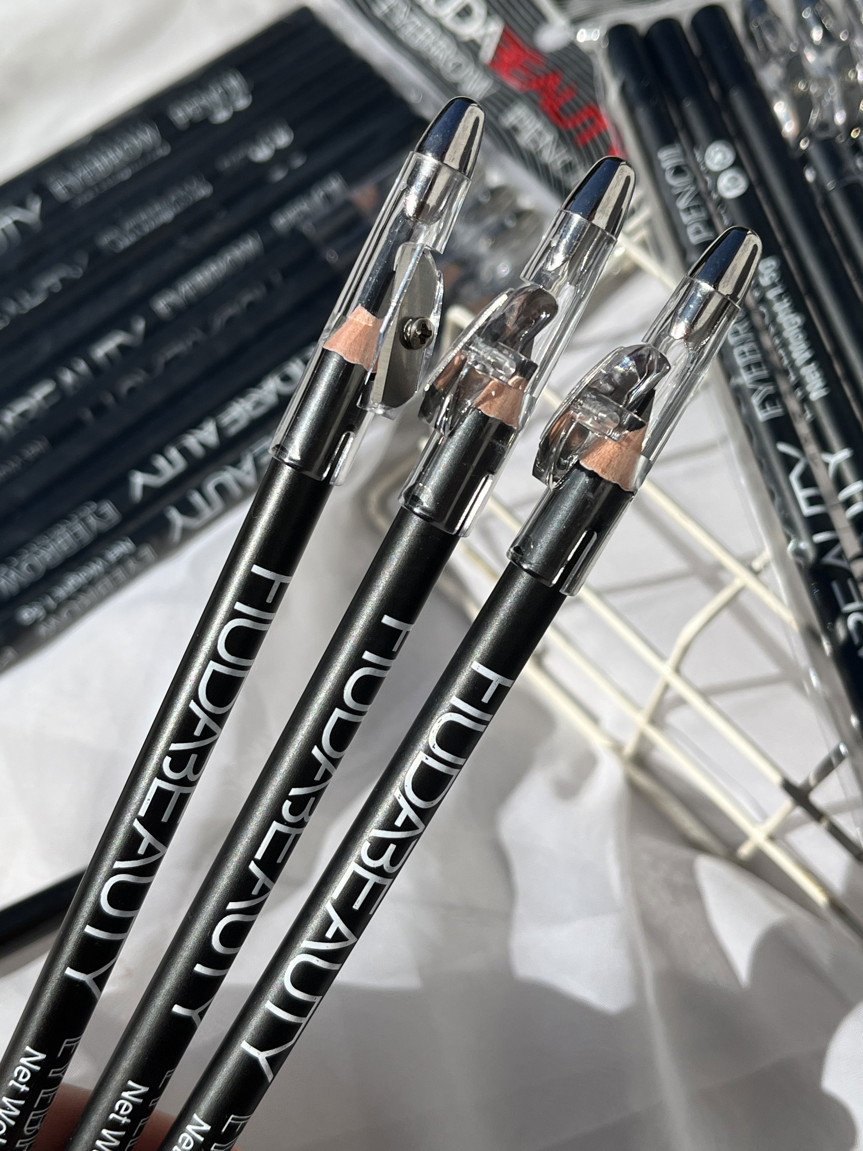3 delineadores de ojos con sacapuntas